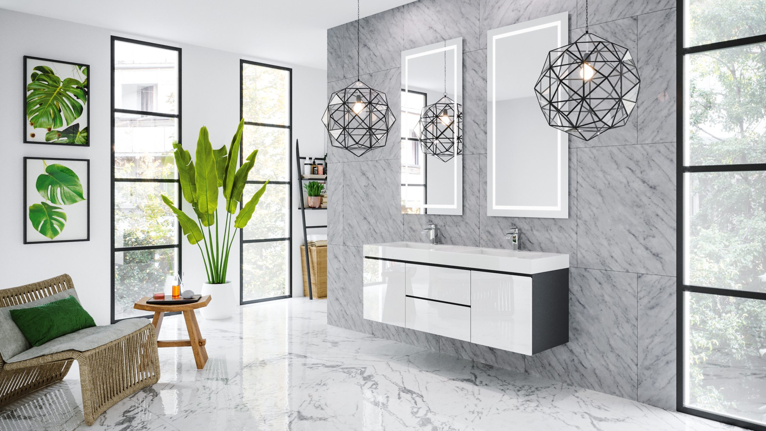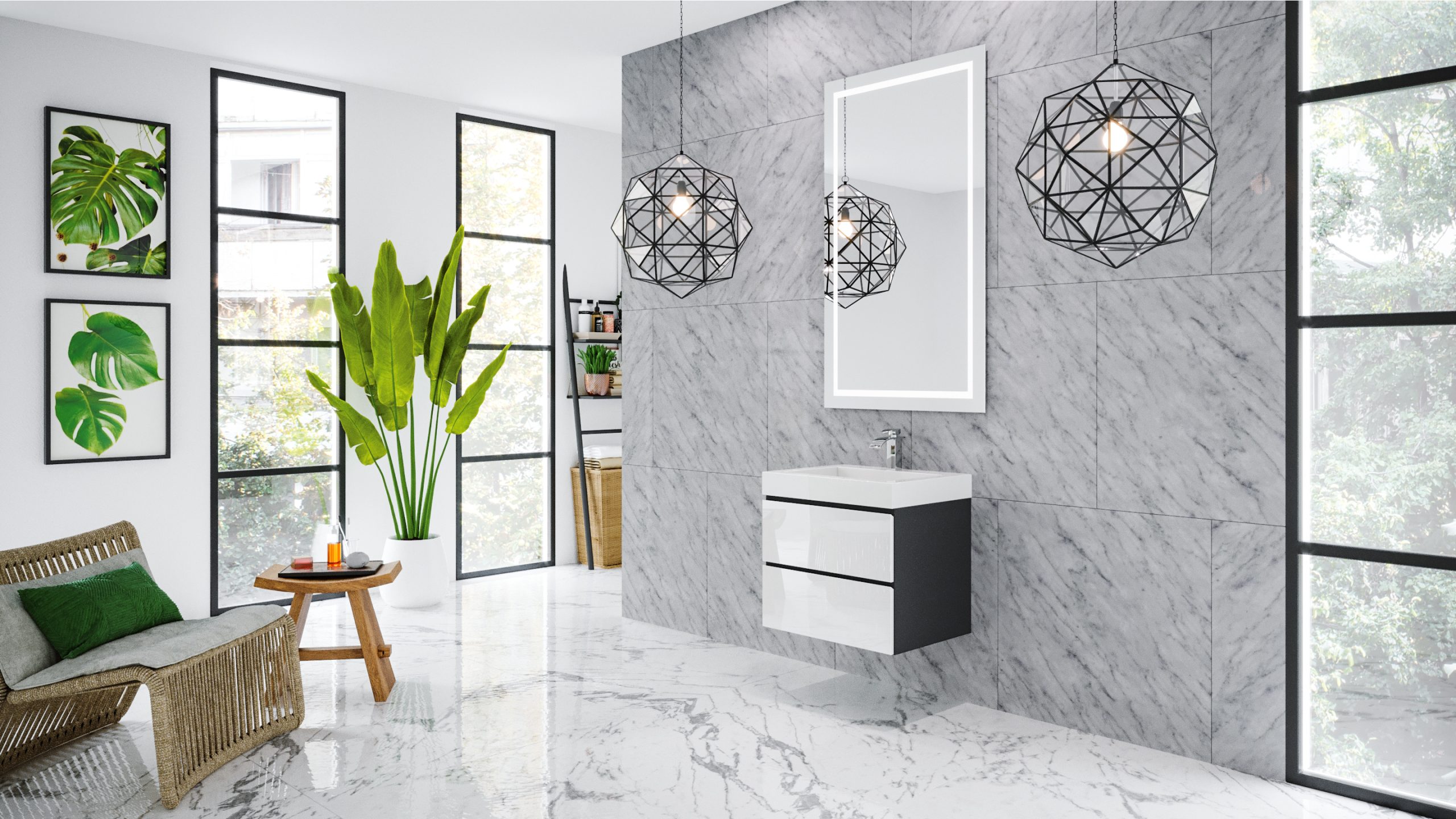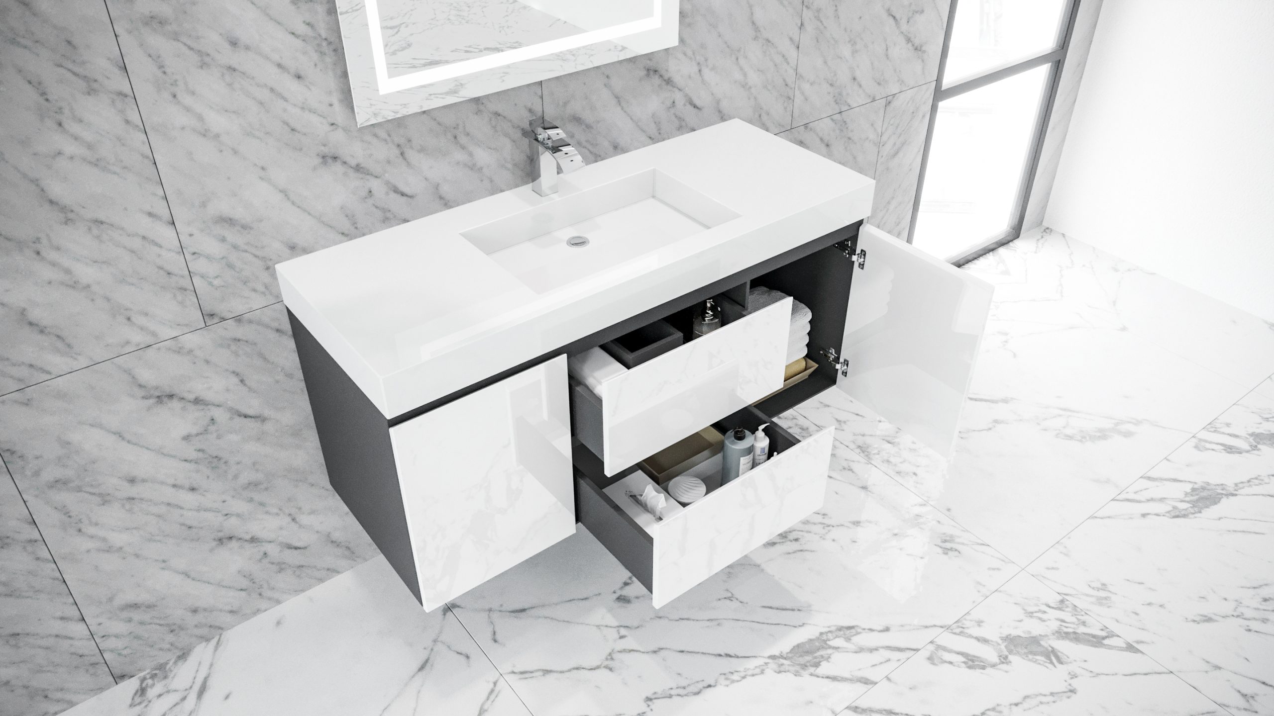 Queen 48″ Wall Mount Antracite White Color With Solid Surface Top