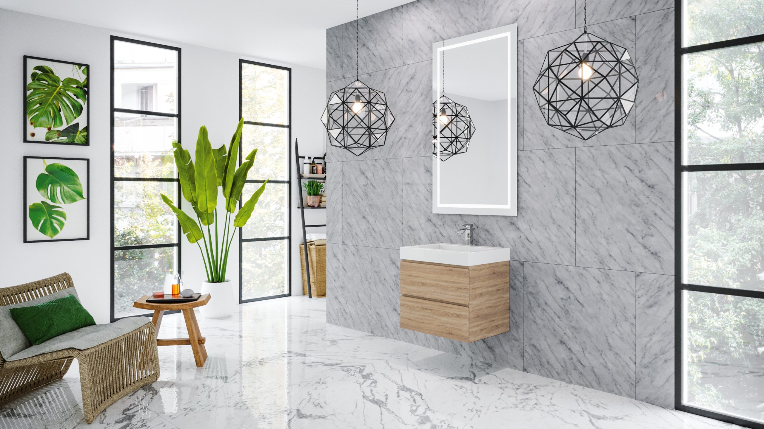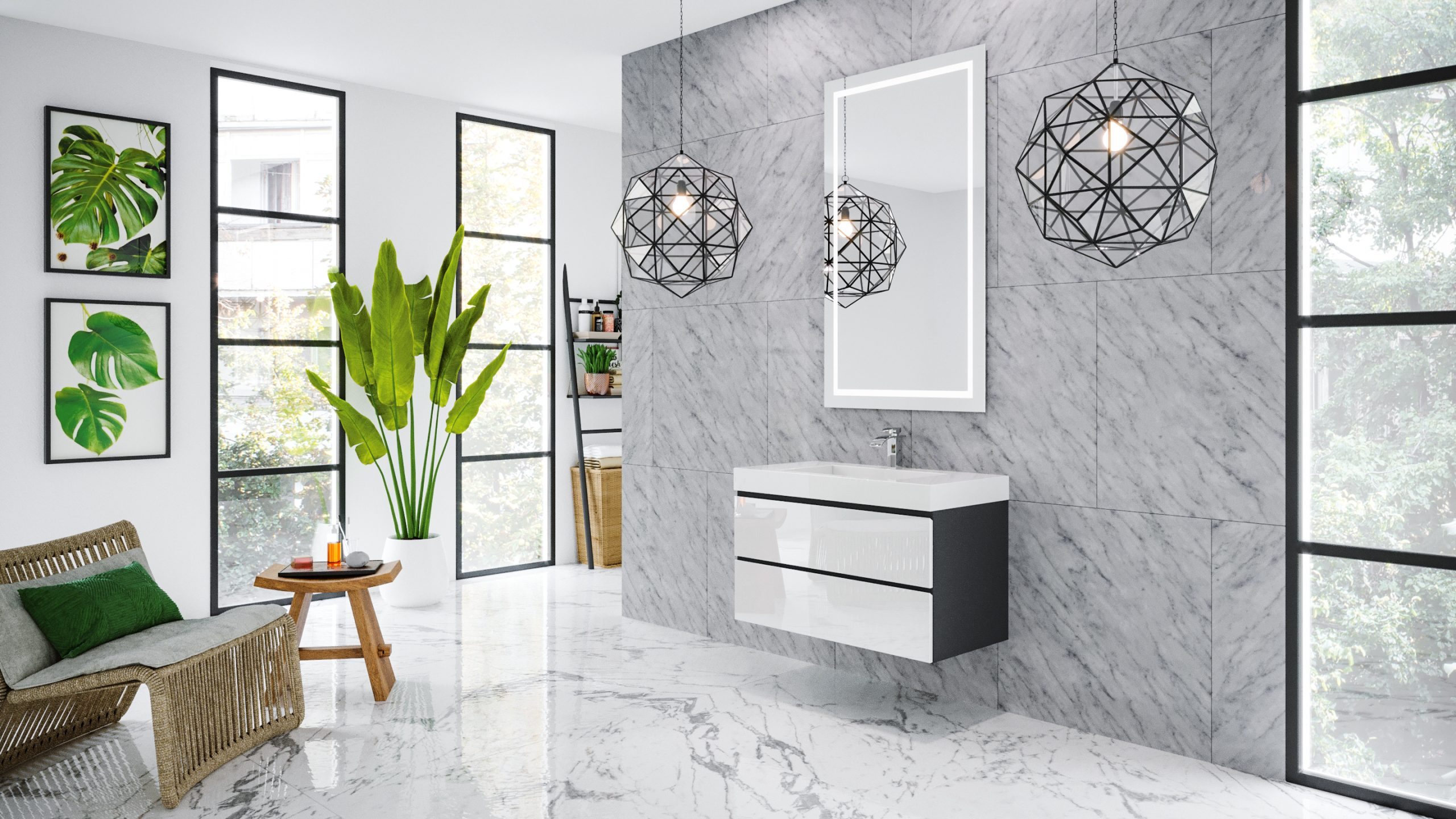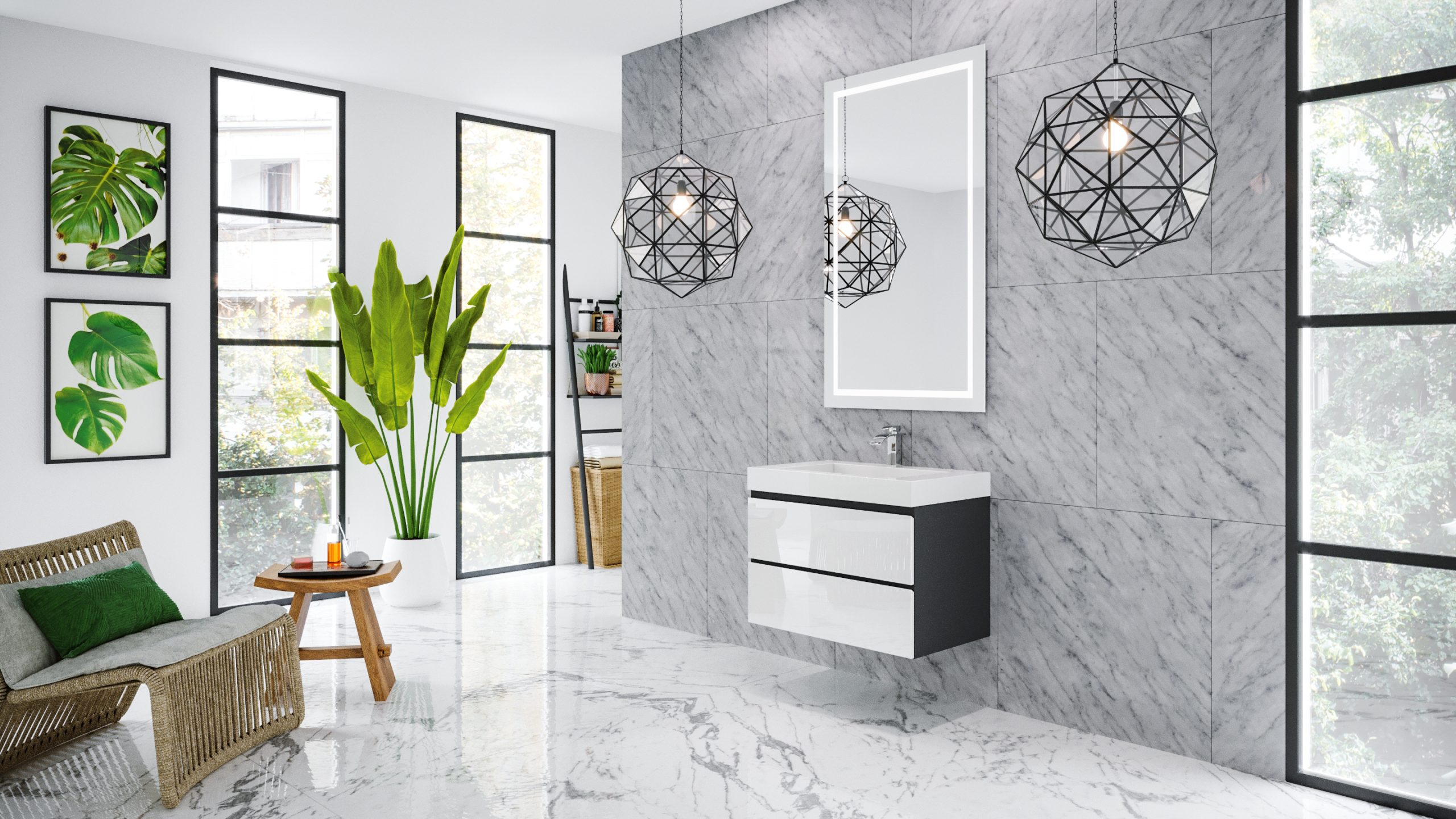 Queen 48″ Wall Mount Antracite White Color With Solid Surface Top
