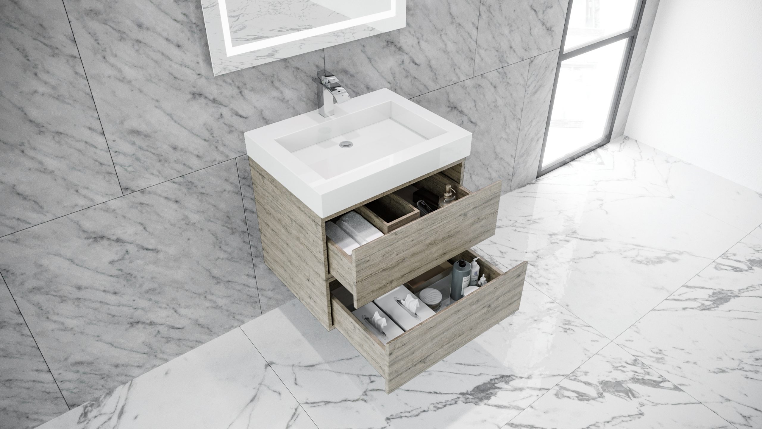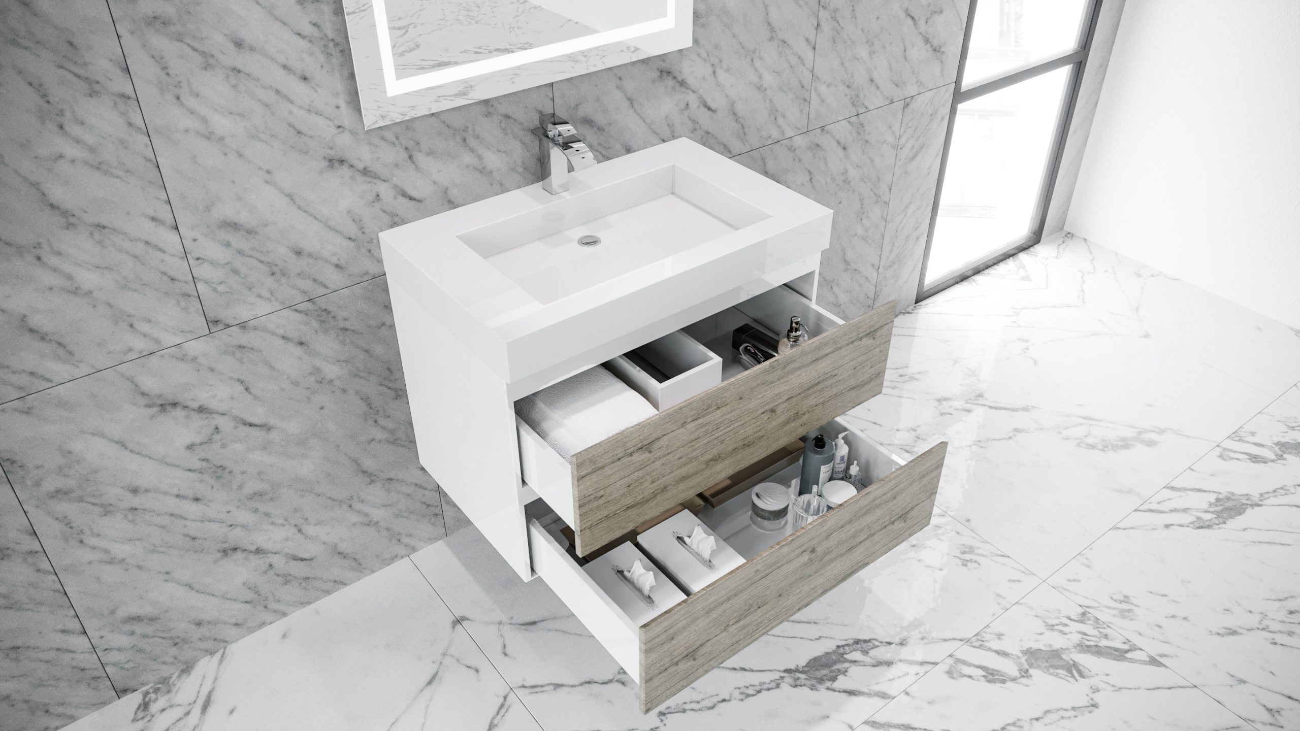 Queen 30″ Wall Mount Rustic Gray White Color With Solid Surface Top