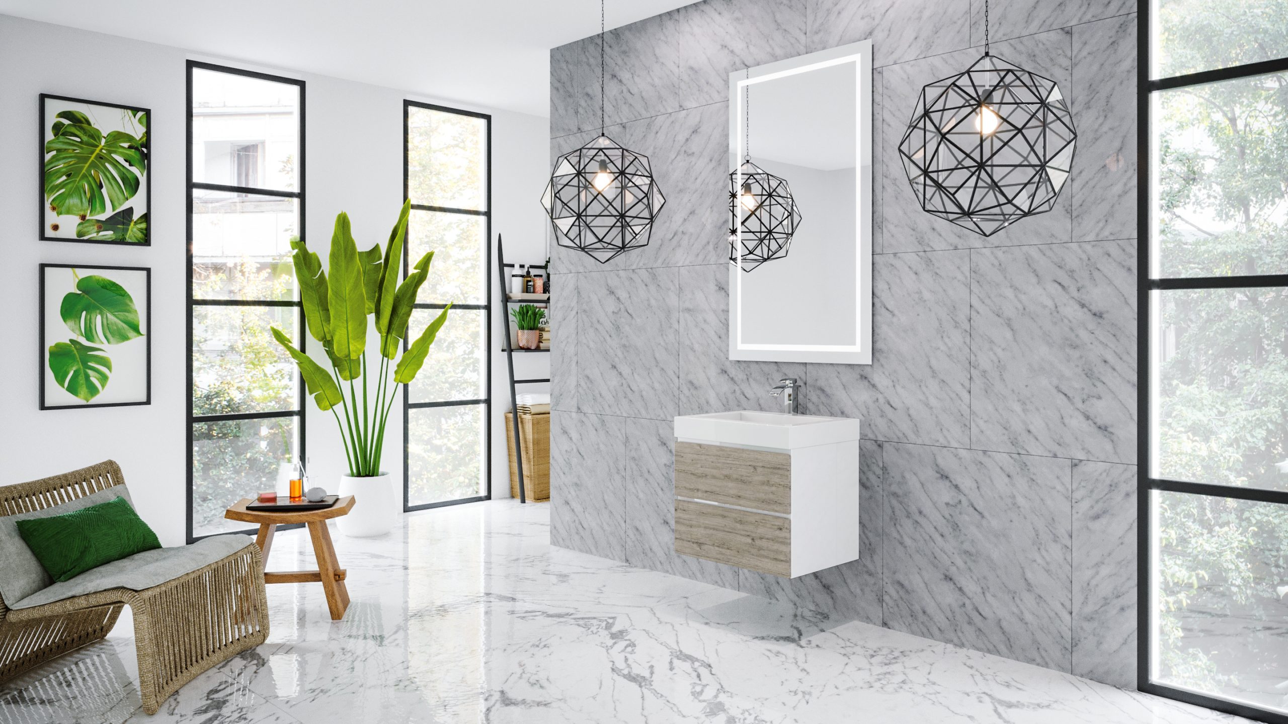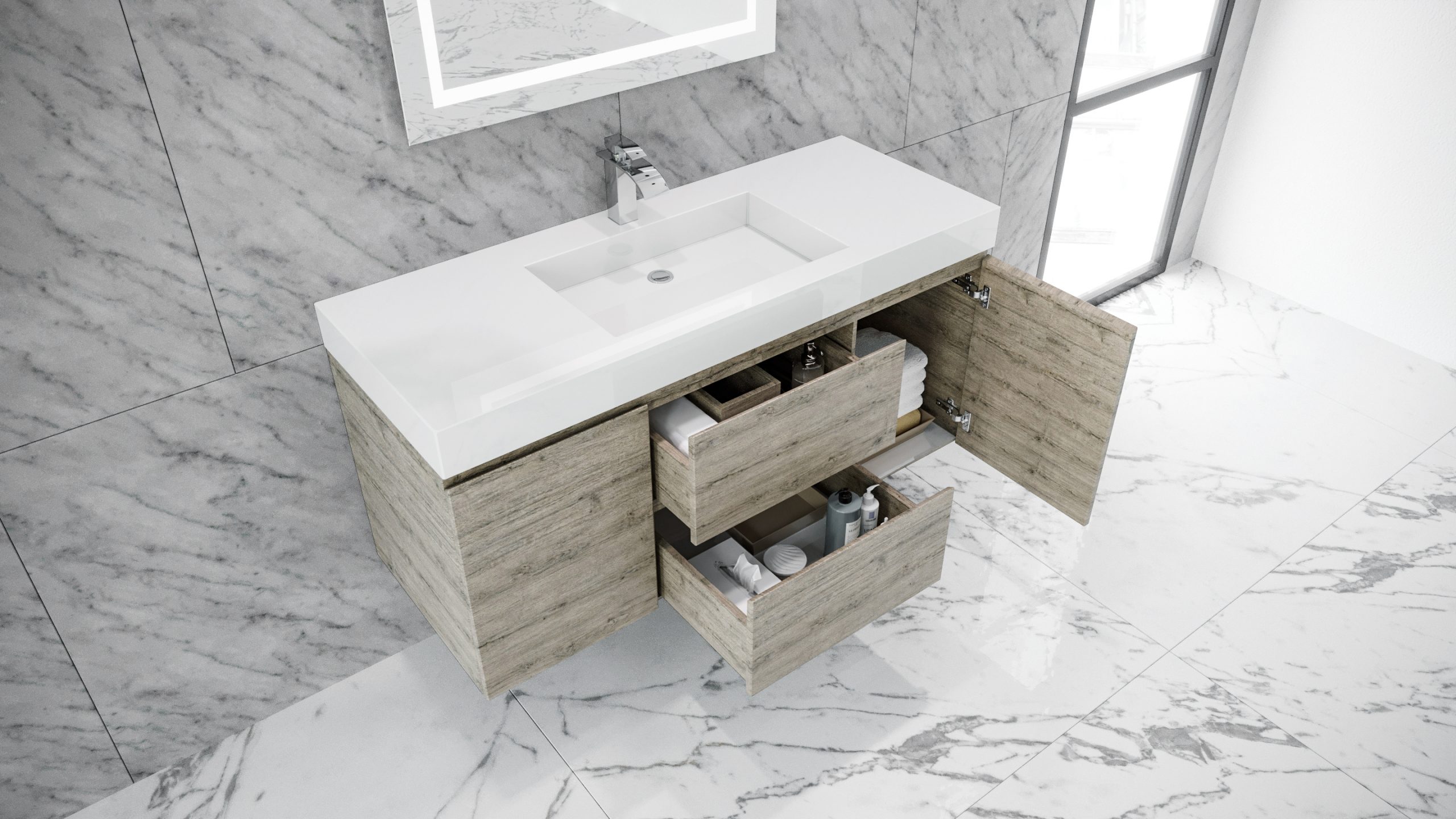 Queen 48″ Wall Mount Rustic Gray White Color With Solid Surface Top