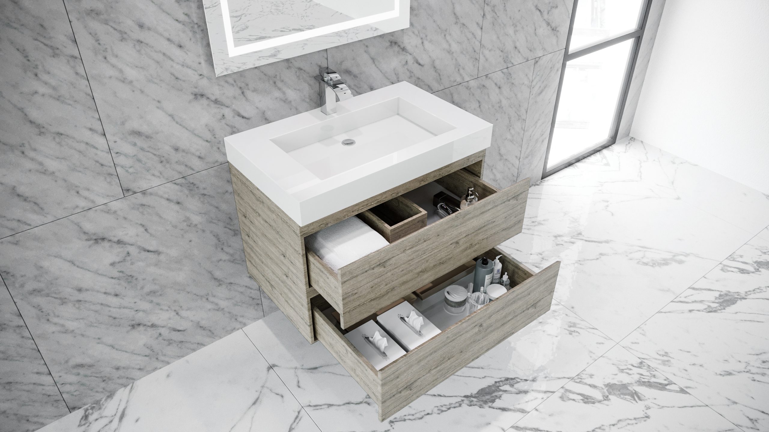 Aura 36″ Freestanding Rustic Gray Color With Solid Surface Top
