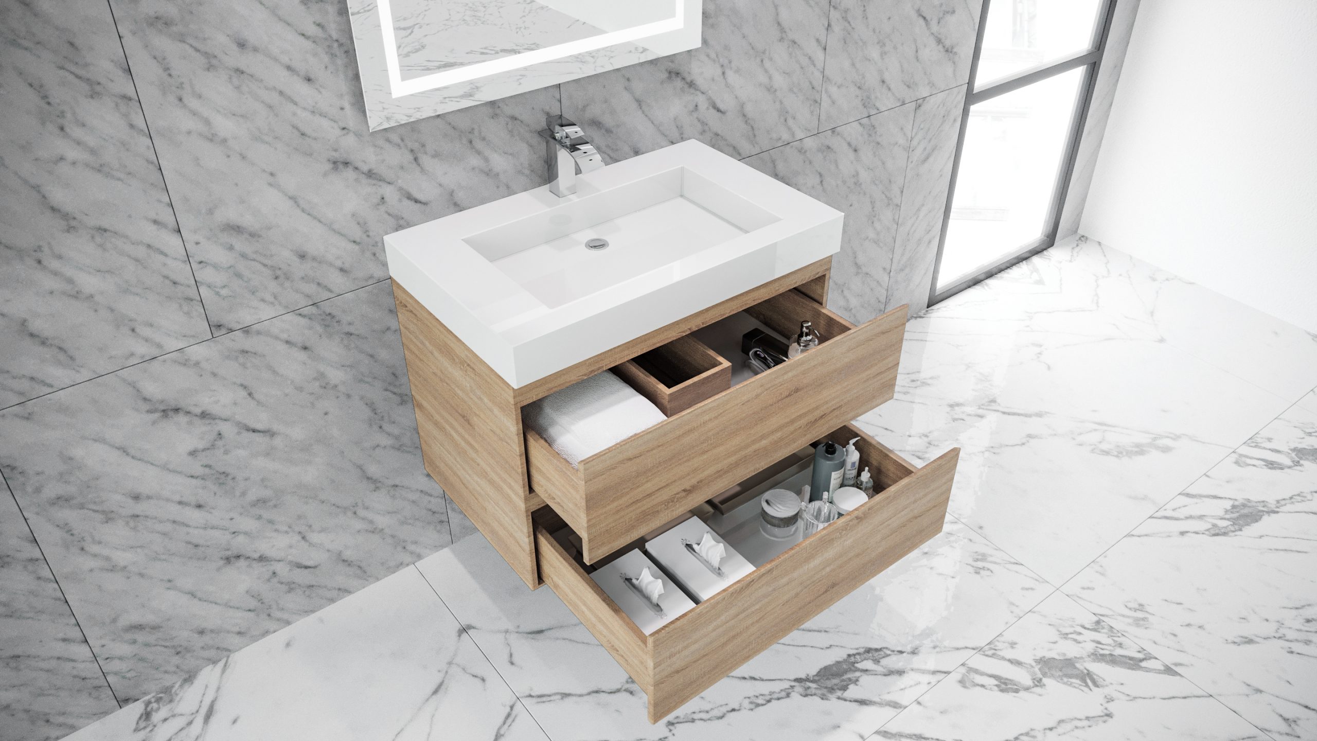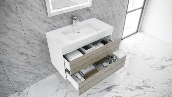 Aura 36″ Freestanding Sonoma White Color With Solid Surface Top