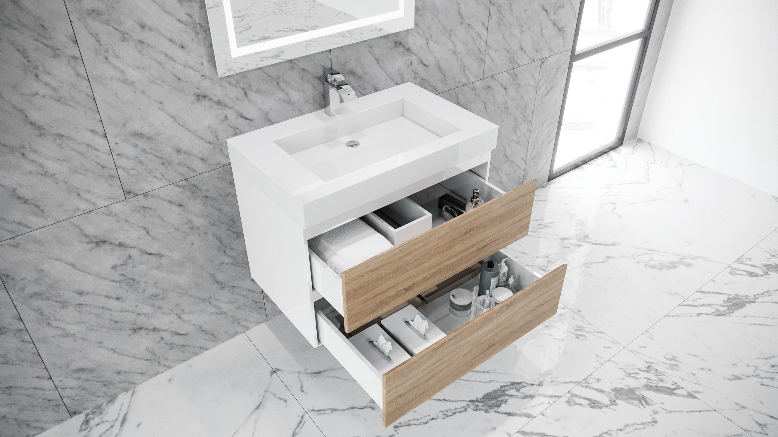 Aura 30″ Freestanding White Color With Solid Surface Top