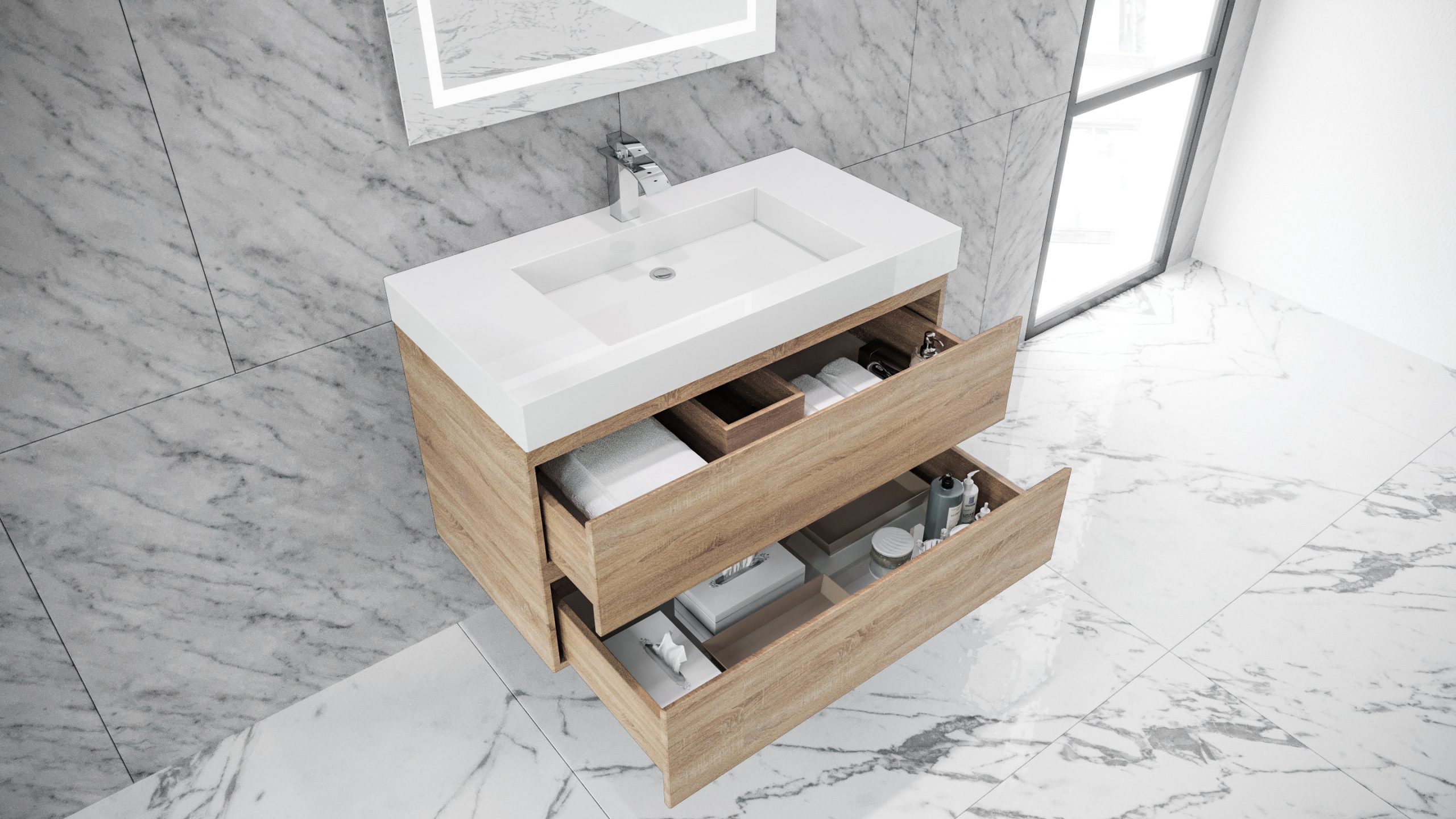 Aura 36″ Freestanding Sonoma Color With Solid Surface Top