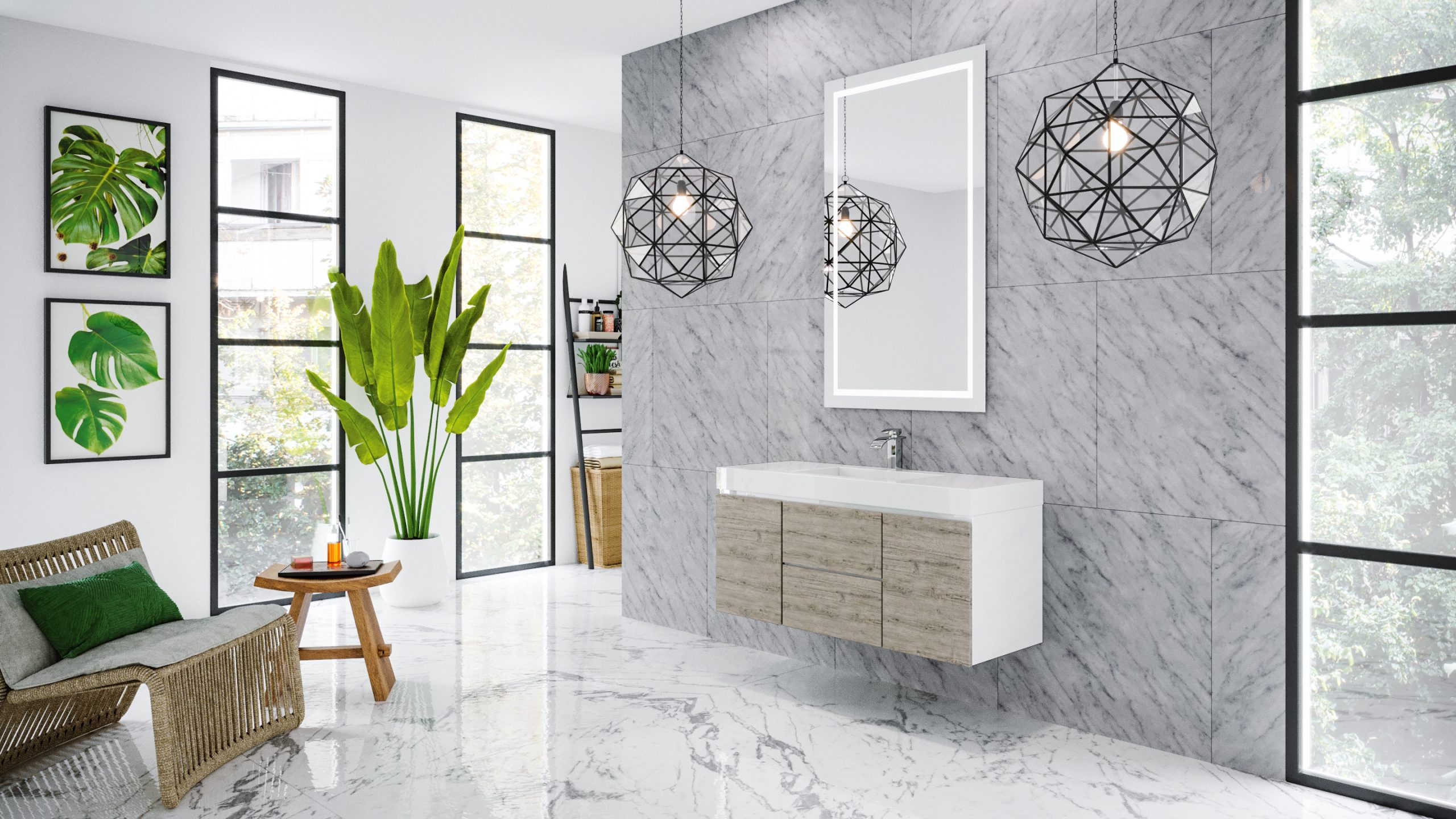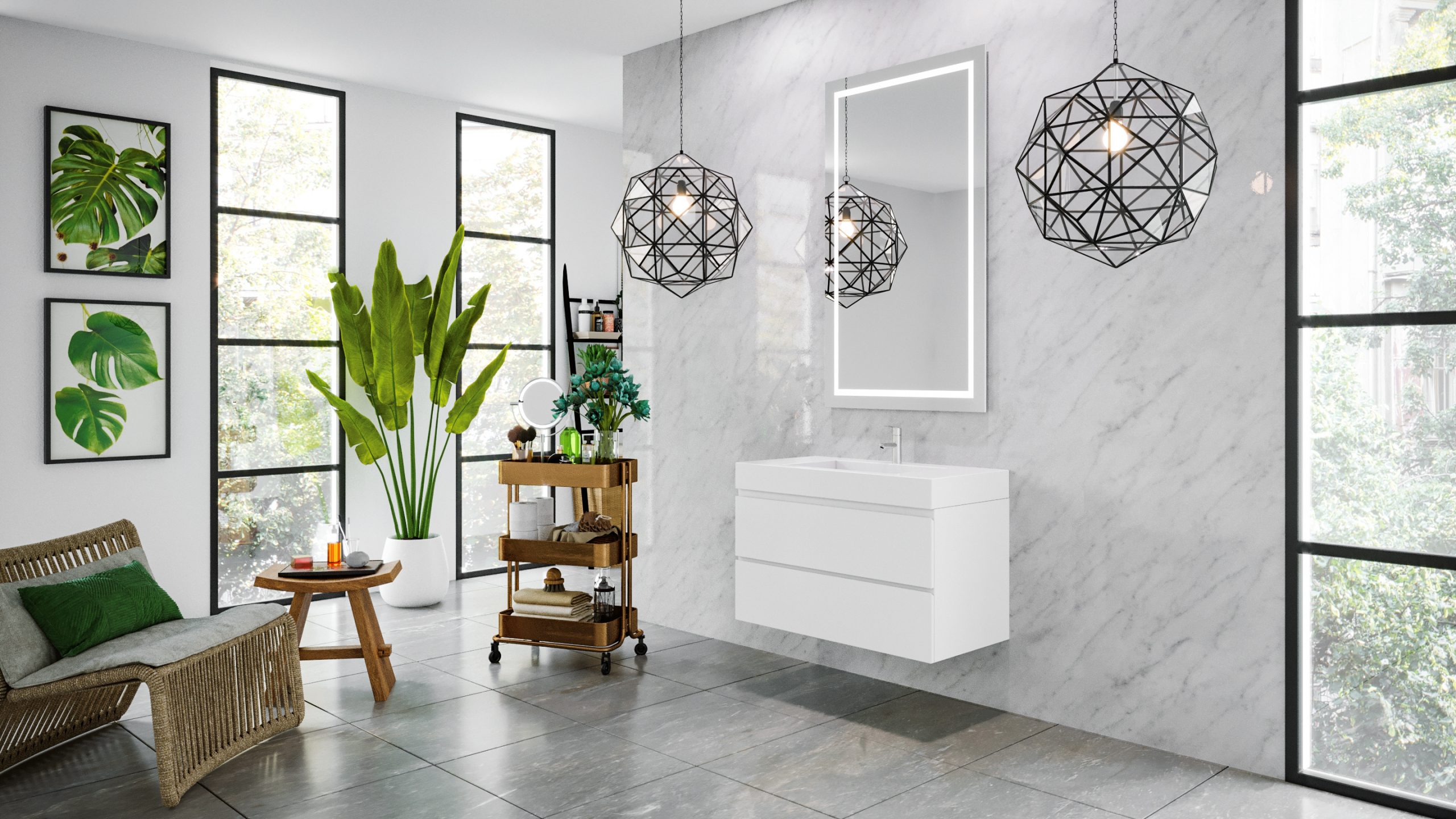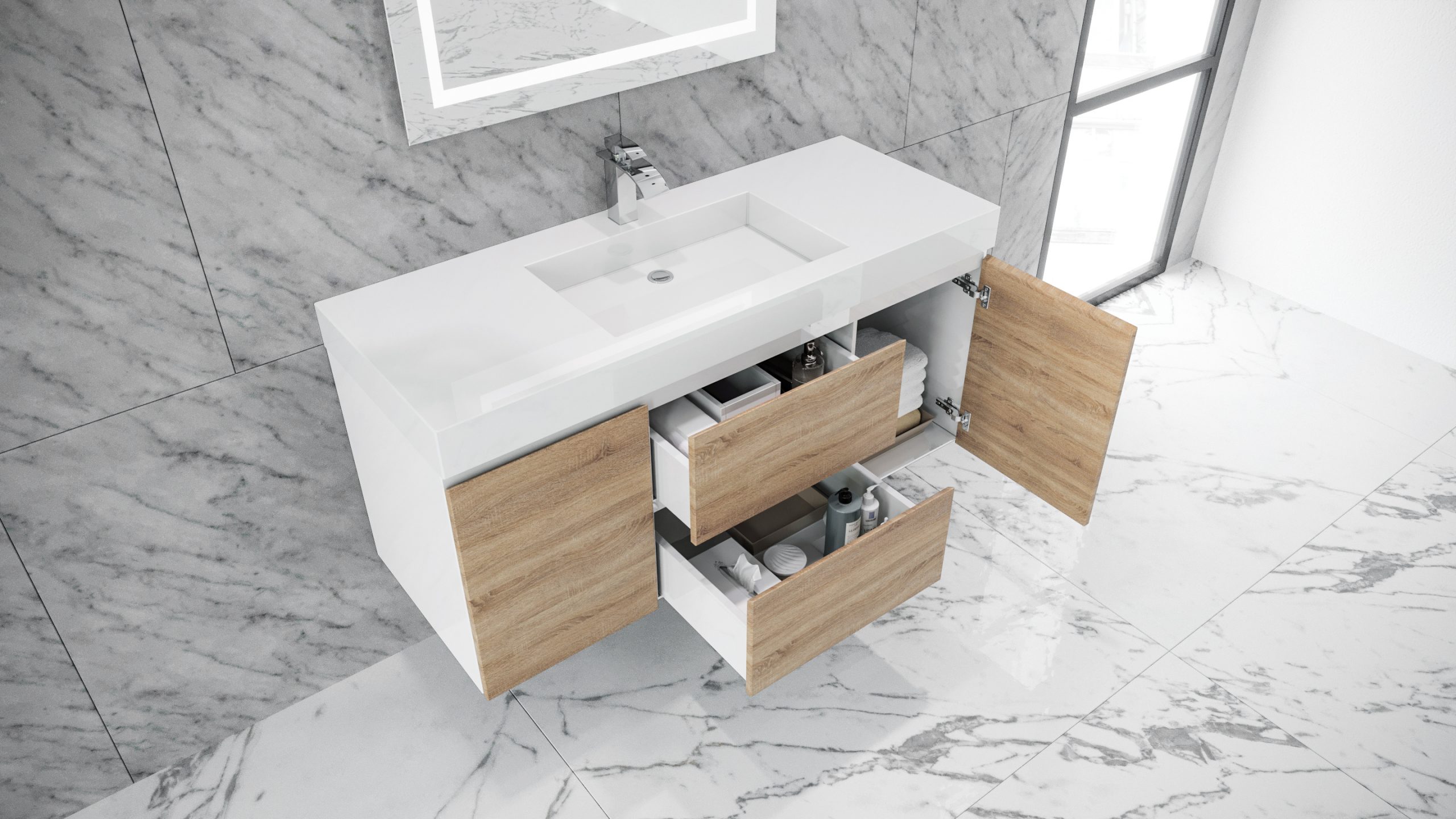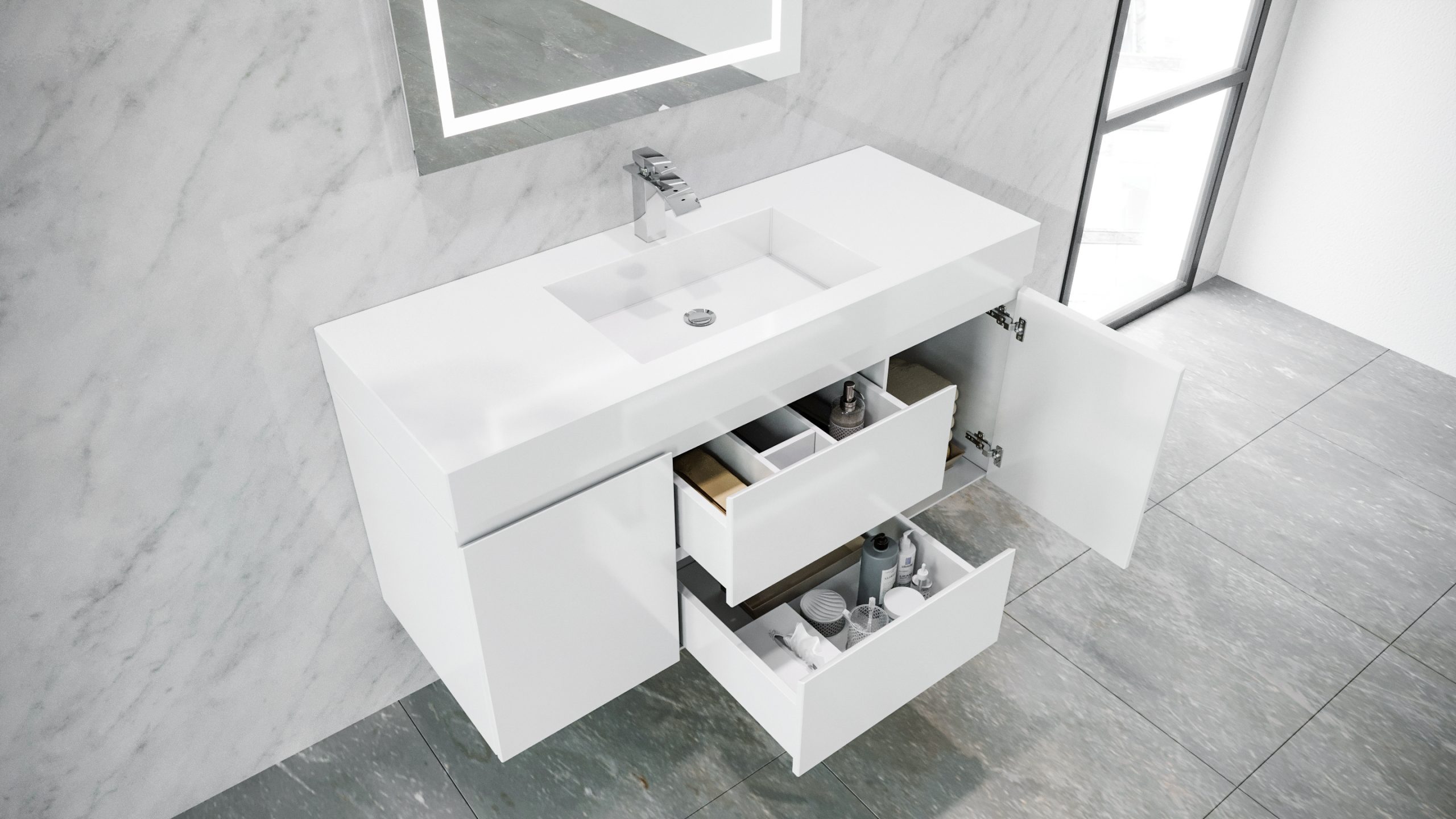 Queen 48″ Wall Mount Sonoma White Color With Solid Surface Top