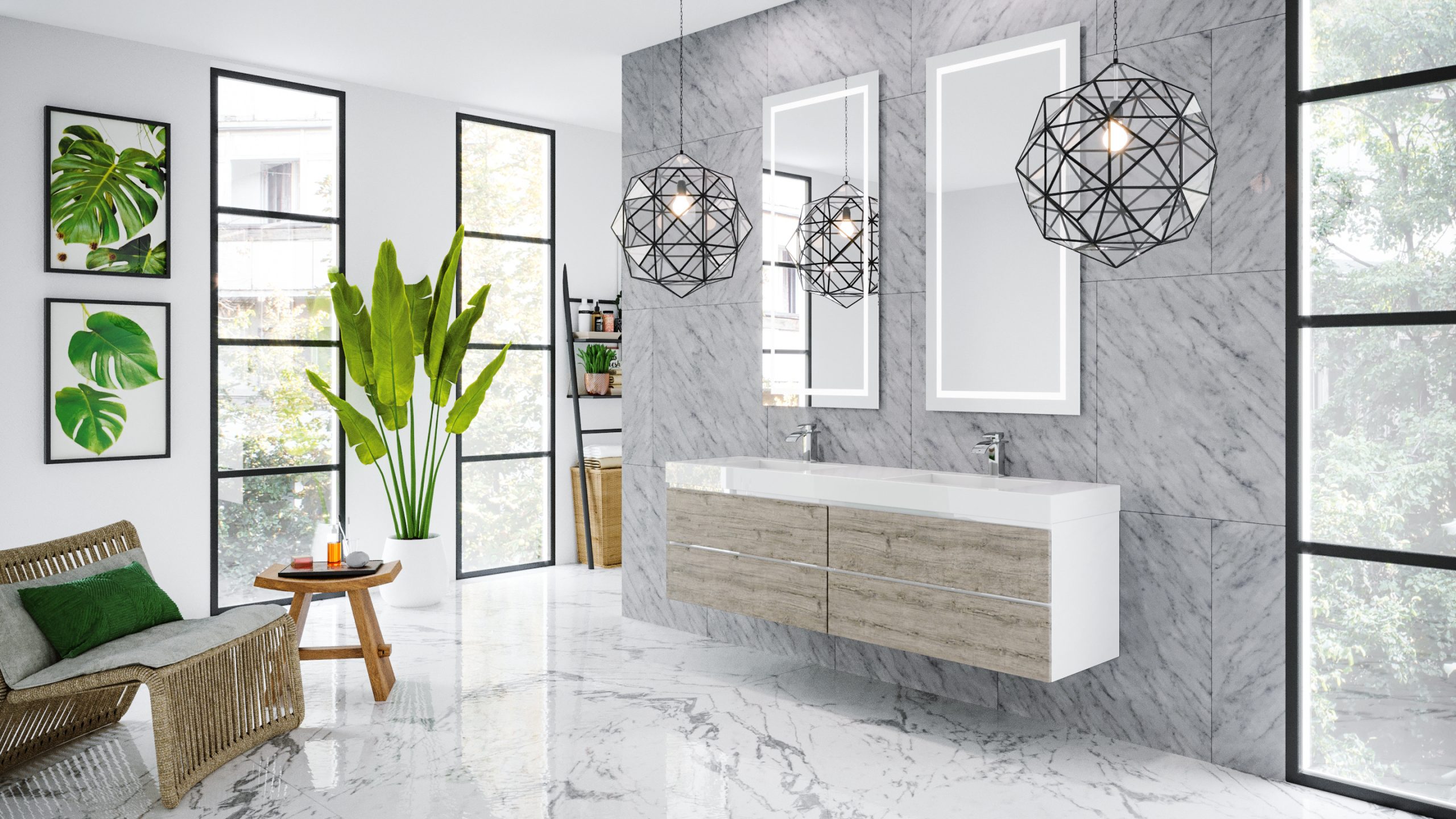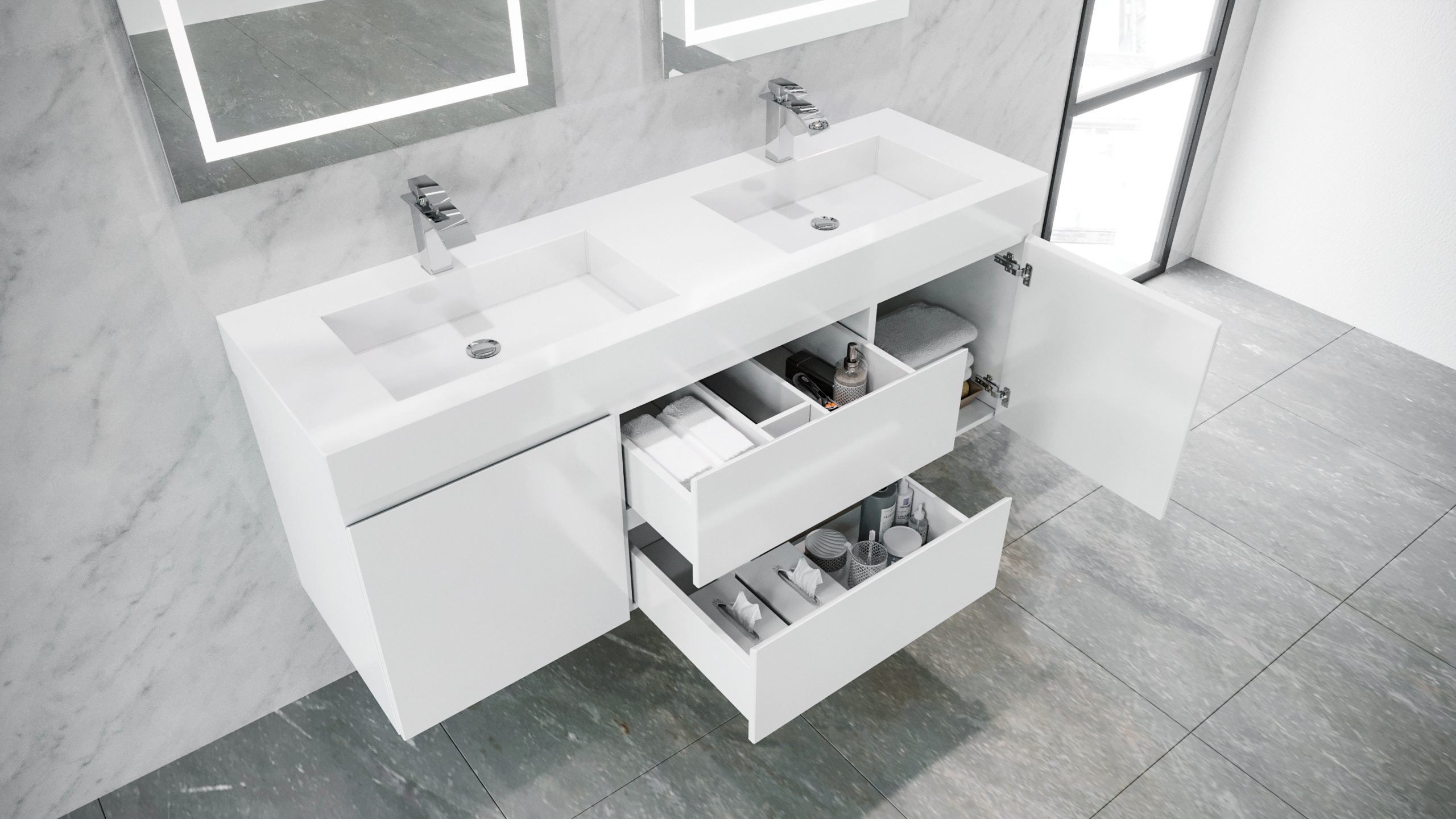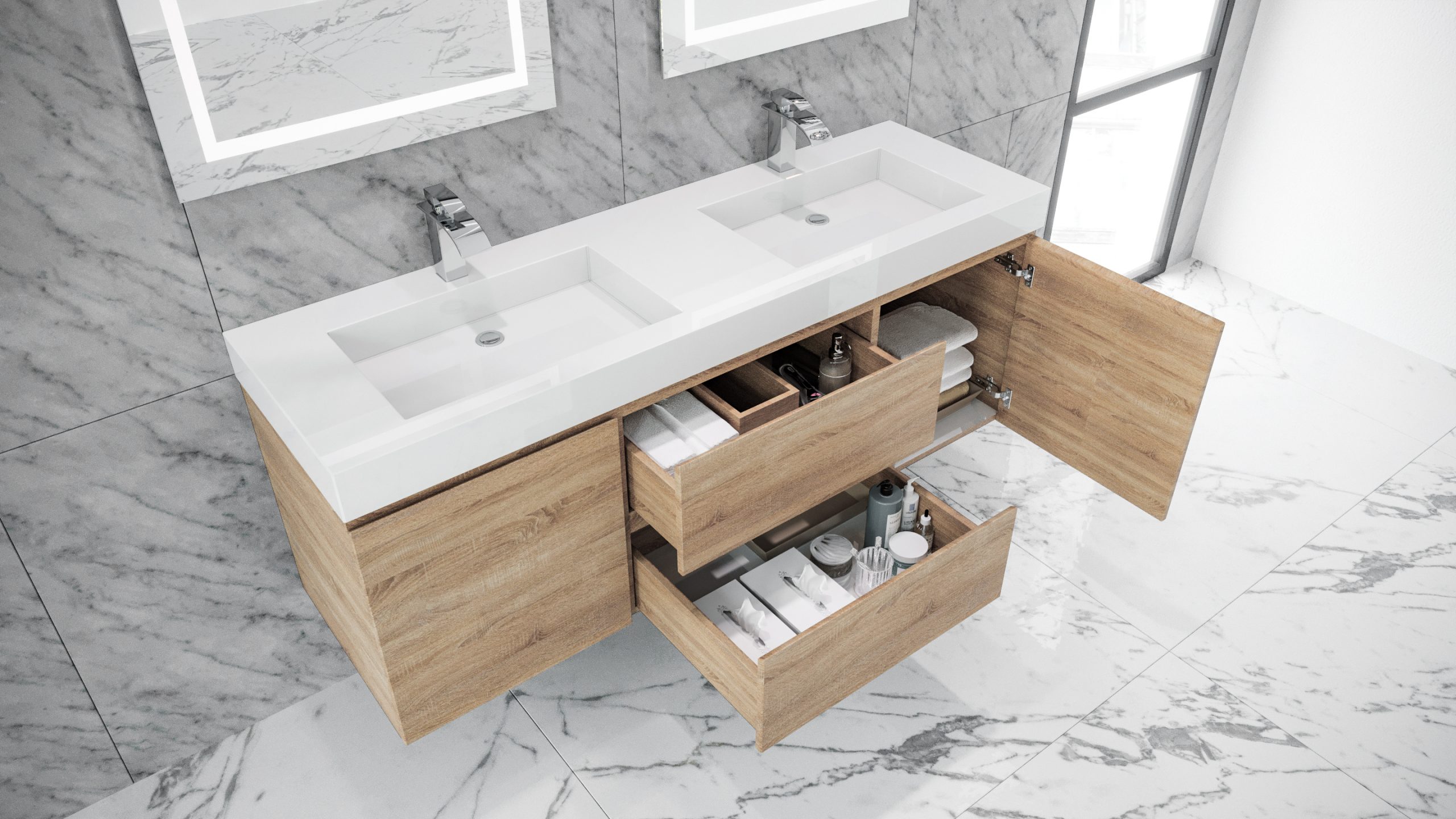 Queen 60″ Wall Mount Sonoma White Color With Solid Surface Top (Double Sink)