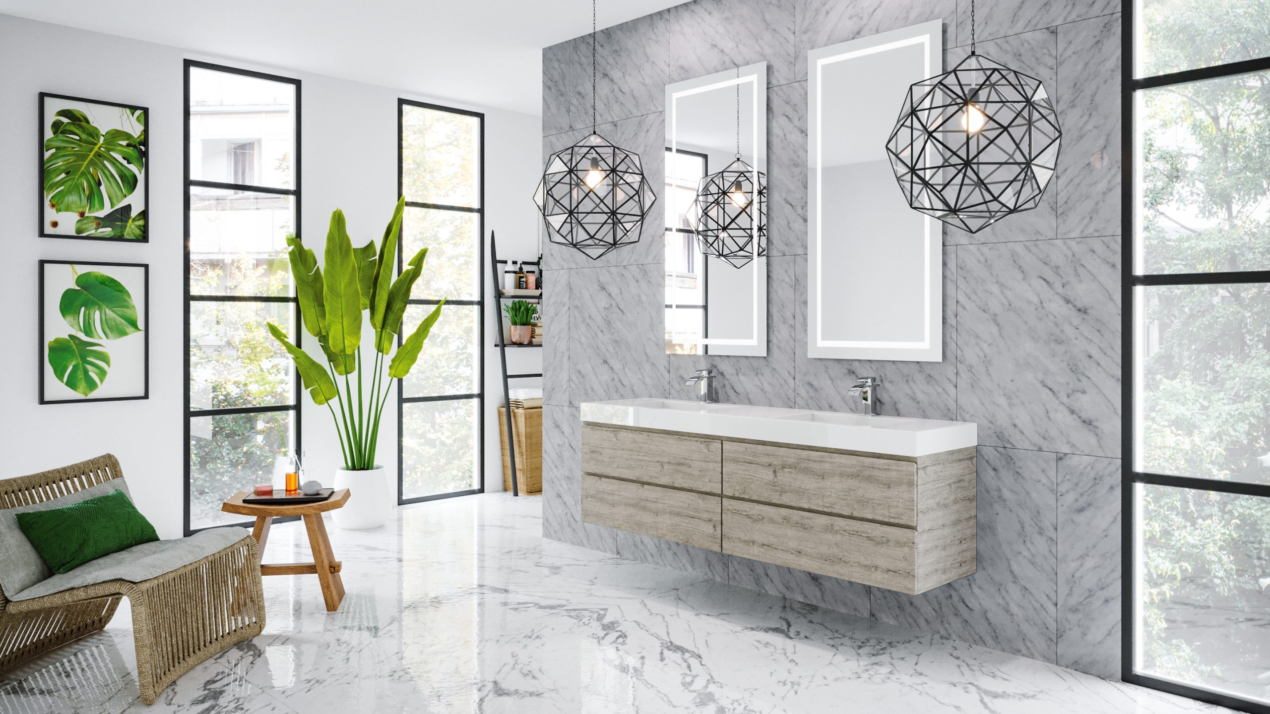 Queen 60″ Wall Mount Rustic Gray White Color With Solid Surface Top (Double Sink)